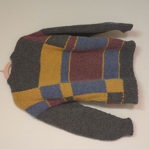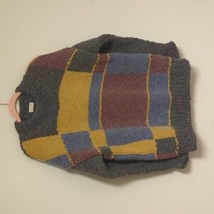 Cabincore M/L Patchwork Fisherman Style Knit Crewneck Size Medium/Large