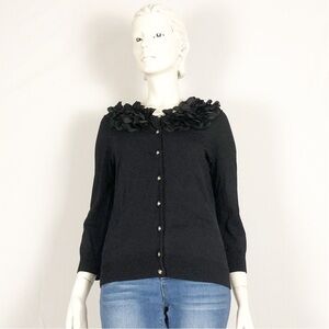 🖤Cable & Gauge Black Cardigan | Floral Appliqué Neckline | Size Small🖤