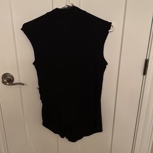 Cable & Gauge Black Size Small Stretchy Sleeveless Top with rosette detail & raw hem at neck.