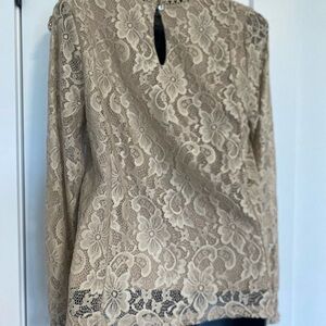 Cable & Gauge Lace Tan Long Sleeve Lined Top Shirt Size Medium