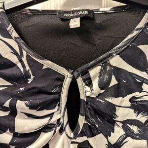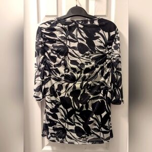 Cable & Gauge Monochrome Print Sheer Mesh Top With Ruching