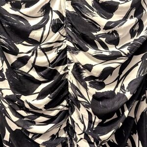 Cable & Gauge Monochrome Print Sheer Mesh Top With Ruching