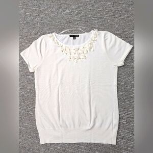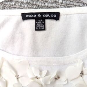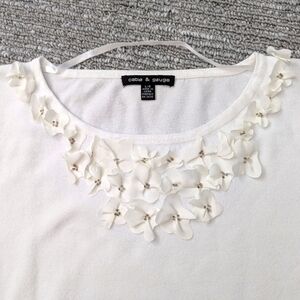 🎈Cable & Gauge Pearl White Sweater With Flower Appliques Around Neckline