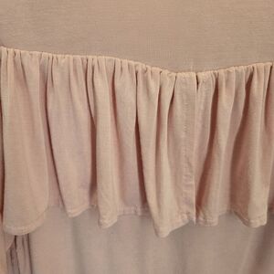 This blouse by Cable & Gauge features a charming ruffled design and a soft pink hue. The cut-out style adds a modern twist, making it a versatile piece for both casual and dressy occasions Length 25" Width 18"