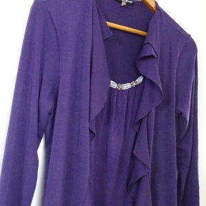 Cable & Gauge Purple Petite Medium Cocktail Beaded Neckline Blouse