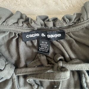 Cable & Gauge Womens Medium Green Sleeveless Ruffled Blouse