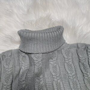 Gray Cable Knit Long Sleeve Turtleneck Sweater Top Ribbed Knit Trim Winter Wear Comfy Cozy