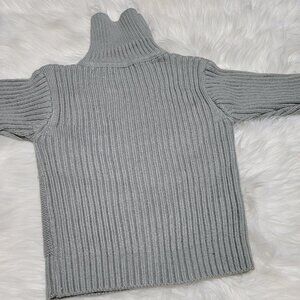 Cable Knit Sweater | Gray Long Sleeve Turtleneck Ribbed Knit Trim Causal Winter