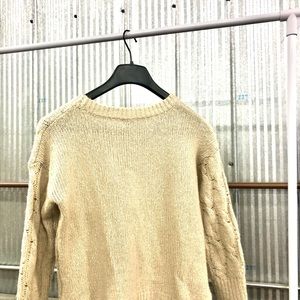Creamy sand colored cable knit sweater the perfect length and nice and cozy!