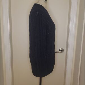 Dark Navy Blue Cable Knit Open Front Cardigan Sweater, by HOLLISTER.