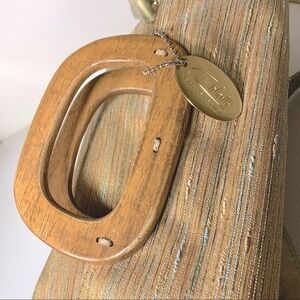 Cabrelli Vintage Tapestry Style Hand Bag Earth Tone Golden Wooden Handle ZipTote