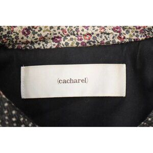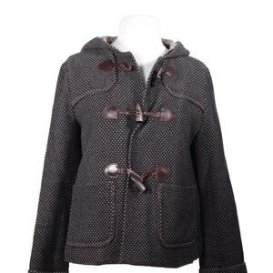 Cacharel Women’s Small Brown Tweed Duffle Coat Wool Elbow Patch Hooded Jacket