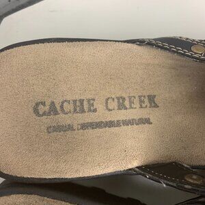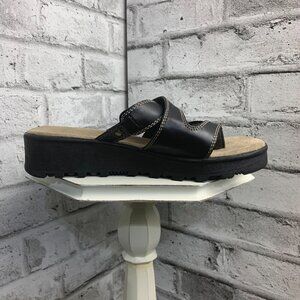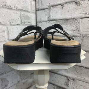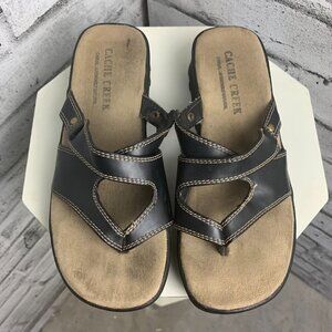 Cache Creek Chunky Black Faux Leather Slip On Thong Casual Comfort Sandals