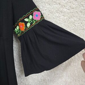 Cache Dress Womens Medium Black Short Bell Sleeve Embroidered Boho Festival