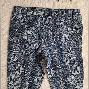 Step up your style game with these striking snakeskin print pants, crafted for both comfort and flair. Made primarily from soft, breathable cotton, they offer a comfortable fit while delivering a sleek, modern look. The bold pattern adds an edgy touch, making them a versatile choice for casual outings or more polished occasions. Lightly worn and in excellent condition, they’re the perfect blend of style and coziness.