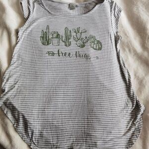 Cactus FREE HUGS tshirt striped super soft curved hem cap sleeve