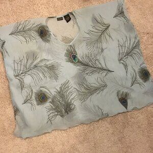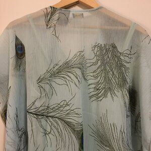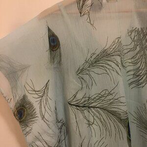 Good preowned condition, flowing, sheer, crepe-like fabric, seafoam green beach cover/poncho by Cactus. Perfect for lounging at the poolside. It's beautiful, but there are a couple imperfections (please see photos). There is a pull and a small hole in another area.
