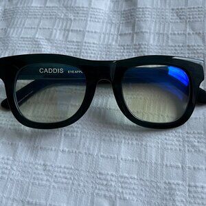 Pre-owned Caddis D-28 Reading Glasses in Heritage Green featuring lens power of 1.50. The lens is made with an anti-reflective and scratch-resistant coating.