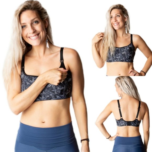 Cadenshae Activewear Nursing Bra Swift Bra Stellar Size Large Black & White