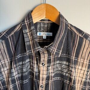 Cafe Bleu Men's Jacquard Long Sleeve Paisley Casual Dress Button Shirt Brown M