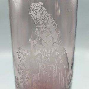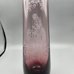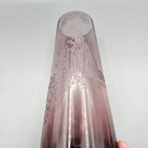 Caithness “Romeo and Juliet” etched amethyst glass vase