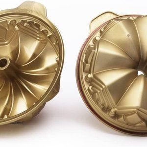 Tube (bundt) cake silicone pan with low-cathedral design in 100% food-safe silicone. Excellent unused condition, still in original packaging with recipe info.