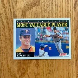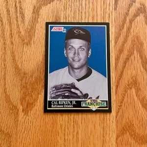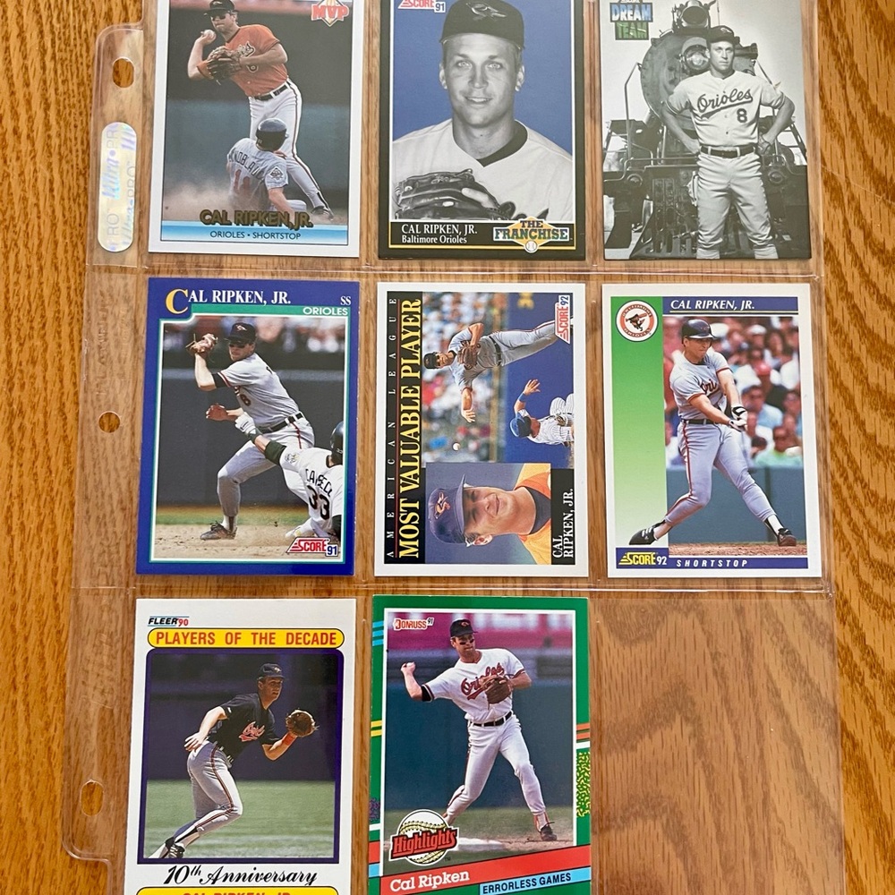 Collection of Cal Ripken Jr. baseball cards. Features various designs and action shots.