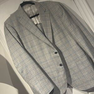 Elevate your style with this sophisticated, Italian made, high quality gray plaid blazer with thin blue plaid design. Perfect for any formal occasion.Elevate your style with this sophisticated gray plaid blazer. This Italian-made piece boasts high quality craftsmanship. The thin blue plaid design adds a touch of elegance. It is perfect for both formal and casual occasions. You will surely turn heads with this stylish blazer.