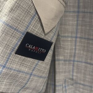 Calabrito Napoli - Men's Gray With Blue Plaid Pattern Blazer - Size R40