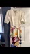 Ted Baker floral pencil dress. Goes past the knee to the calf. Sleeves are mid length. Ted Baker size 4 which is uk size 14 which is US size 10. It’s mainly off white and not quite a cream colour.