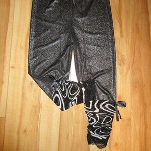 Calf-length leggings, elastic waistband, contrasting pleated hem with ribbon. Brand : SNP. Fabric: 94% polyester/6% spandex. Color : Silver and black. Size : M.