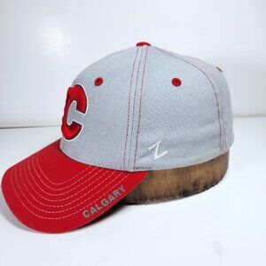 Calgary Flames Cap Hat Cap Med / Large Zephyr NHL Stretch Fit Hockey Grey & Red