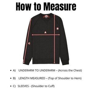 • Measurements: A) Width 25 (B) Length 27.5 (C) Sleeve 28