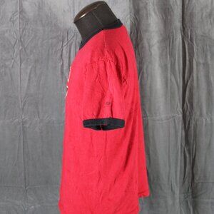 Up for sale is a retro Calgary Flames shirt. It is a ringer shirt with a red base colour and black trim. The front of the shirt has the Flames black C logo screened on. What a great shirt do not miss out on it.