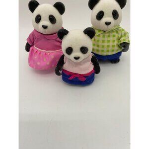 Calico Critters/ Sylvanian Families Pookie Panda Bear Family Toy Set. Does show some wear due to play. There is a small stain above the smallest panda's eye.
