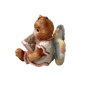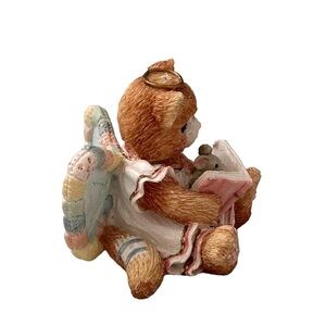 This is a vintage Calico Kittens angel figurine is reading a book with a mouse and it was made in 1993. The kitty angel is sitting with two birds. Comes in the original box.