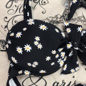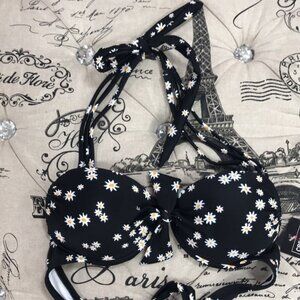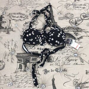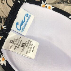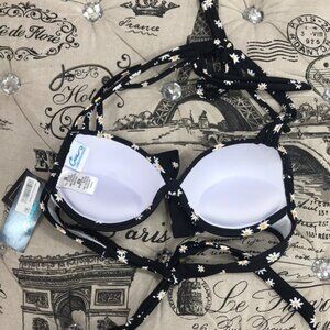 A stunning new look in beach chic, this bikini top from California Waves features slender straps and a fun print. A twist detail and underwire support accent your shape.