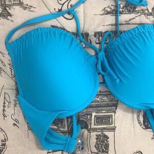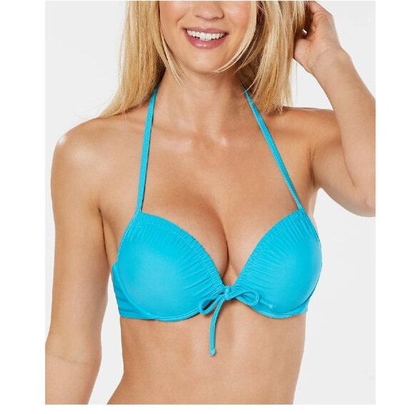 Go for classic chic with this bikini top from California Waves, a sleek halter with push-up cups that enhance your shape.