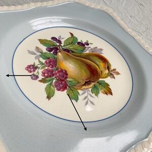 Back of plate has glaze spots (normal, tiny bare spots resulting from the manufacturing process)