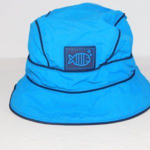 The Calikids Boys XS 0-6 Months Quick Dry Blue UV 50+ Bucket Hat with chin strap is in great clean condition. 100% Nylon - Hand Wash - Air Dry. Features chin strap, and adjustable crown for great fit.
