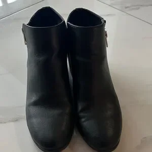Stylish black ankle boots with a sleek design and convenient side zipper. Perfect for any occasion.