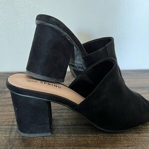 Call It Spring, Black Faux Suede Mules, Size 6.