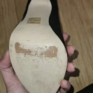 Chic black heels with a sleek design. Ideal for any event. Comfortable and stylish. originaly thifted. some black scuffs on soles of shoes. otherwise great condition too small for myself.
