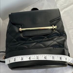 Chic black backpack with quilted design. Features gold hardware. Perfect for everyday style.