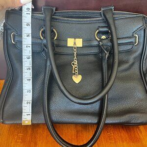Black vegan leather with gold hardware Birkin style handbag or laptop bag, by Call It Spring. Some wear on the handles but lots of life left.