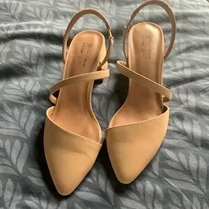 Step into sophistication with these Call It Spring cream heels, featuring a sleek and minimalist design. The pointed-toe and d'Orsay style cut add a touch of elegance, making them perfect for both casual and formal occasions. Crafted with a smooth, matte finish, these heels are a versatile addition to any wardrobe. Worn a handful of times for events.