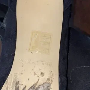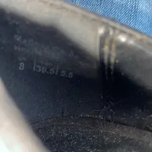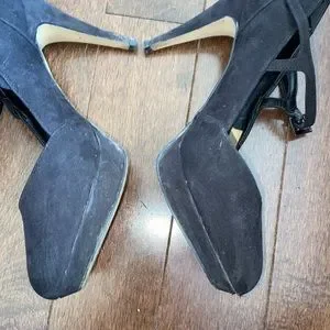 Buckle up black vegan suede heels with platform.