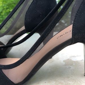Very sophisticated black suede like heels. The mesh sides of these shoes complete the look to perfection. Only worn one time. Heel is 3.5”. If you have a special occasion coming up, these heels are the finishing touch to your outfit!