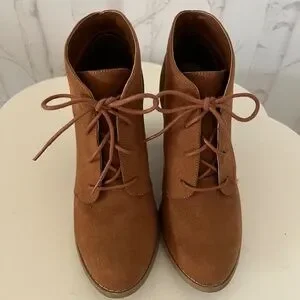 Call It Spring camel lace-up up booties. Barely worn. Size 7.