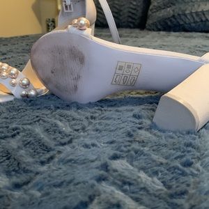 Gorgeous high heeled Lavender Sandals with peals. Love these shoes. Only worn once. Was injured in an accident and I can no longer wear heels. These are fabulous for weddings or dinner out, or even with jeans.